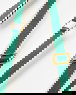 Dark Green & Pink Striped Logo Fabric Mini Tote Crossbody Bag