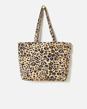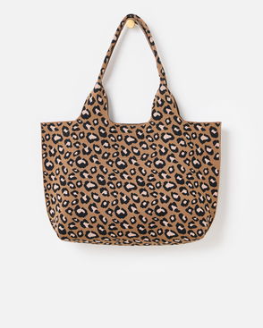 Brown Leopard Print Logo Fabric Tote Shopper Bag