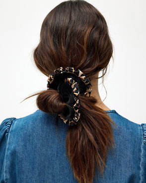 Kimber Black Velvet & Animal Print Frill Trim Scrunchie