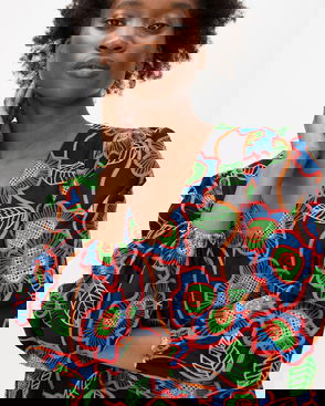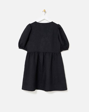 Black & White Polka Dot Tie Front Puff Sleeve Midi Dress