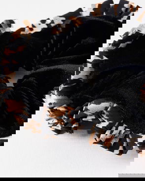 Kimber Black Velvet & Animal Print Frill Trim Scrunchie