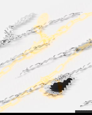 Ardor Enamel Heart Charm Gold Tone Chain Bracelet