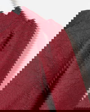 Burgundy Floral Jacquard Peplum Puff Sleeve Top