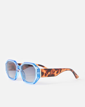 Blue Crystal & Faux Tortoiseshell Hexagonal Sunglasses