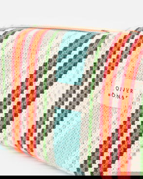 Orange & Blue Woven Striped Makeup Bag