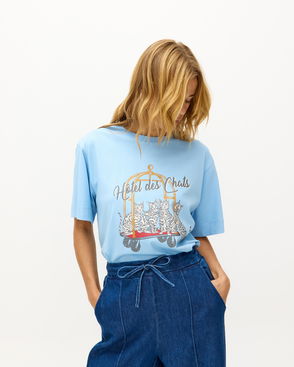 Light Blue Hotel Des Chats Graphic T-Shirt