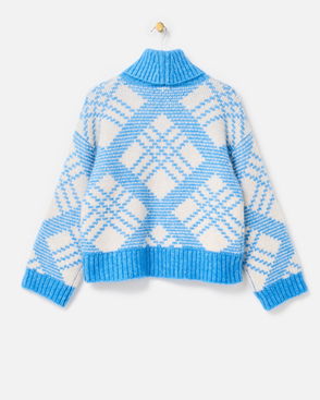Blue & White Diamond Roll Neck Knitted Jumper