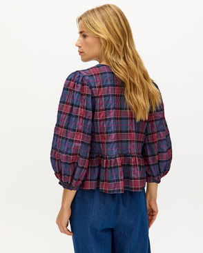 Blue & Red Checked Peplum Blouse