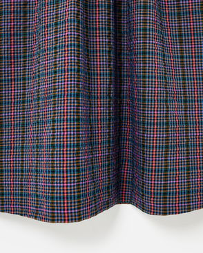 Black & Blue Checked Shirred Bodice Midi Smock Dress