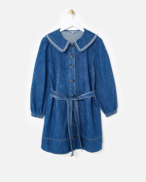 Dark Blue Denim Frill Collar Cotton Mini Dress