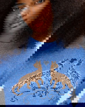 Blue Panther Embroidered Crew Neck Knitted Jumper