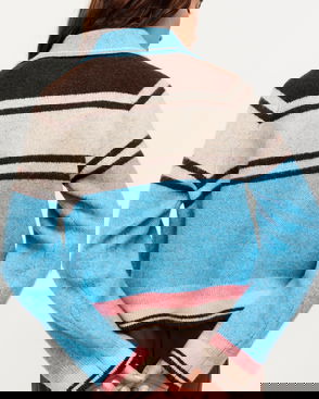 Blue Striped Swan Collared Knitted Bomber Jacket