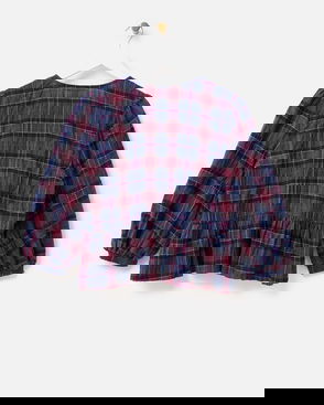 Blue & Red Checked Peplum Blouse