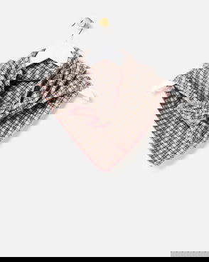 Brown Checked Cherry Motif Midweight Tassel Scarf