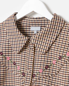 Brown Checked Floral Embroidered Shirt