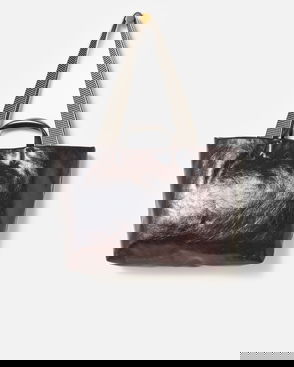 Brown Checked Faux Fur Tote Bag