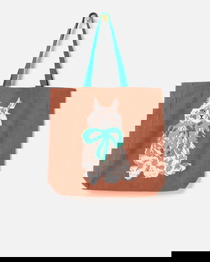 Chocolate Brown Beaded Cat Fabric Tote Shopper Bag