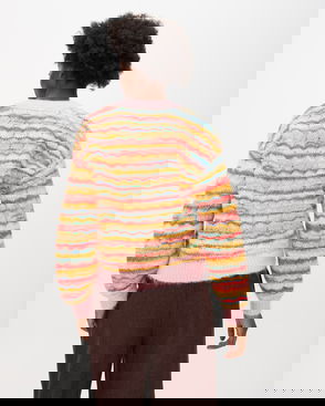 Pink & Burgundy Trim V-Neck Knitted Cardigan