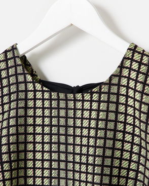 Black & Green Checked Jacquard Puff Sleeve Mini Dress