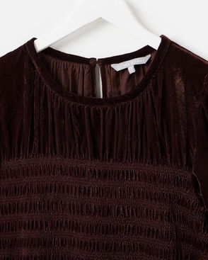 Chocolate Brown Velvet Shirred Bodice T-Shirt