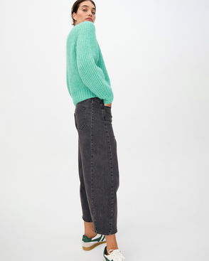 Jade Green Ribbed Crew Neck Knitted Cardigan