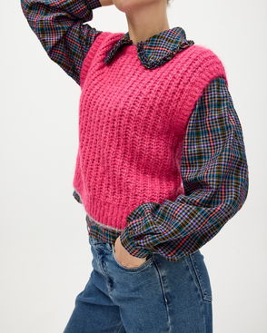 Multicoloured Striped Roll Neck Knitted Tank Top