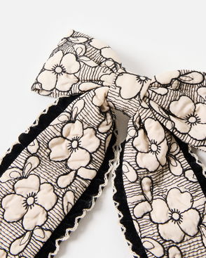 Harlow Embroidered Flower Frill Edge Barrette Hair Bow