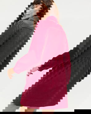 Berry Red Corduroy Zip Up Mini Shirt Dress