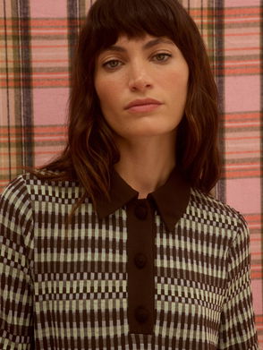Chocolate Brown Checked Jacquard Polo Midi Dress