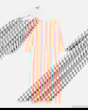 Blue & Red Checked V-Neck Puff Sleeve Midi Dress