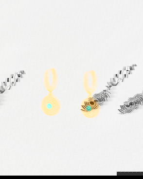 Pavati Inlay Hoop & Stone Gold Plated Drop Hoop Earrings