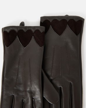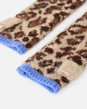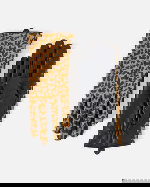 Black Leather Animal Print Faux Fur Mitten Gloves
