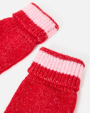 Pink & Red Blanket Stitch Knitted Fingerless Mitten Gloves