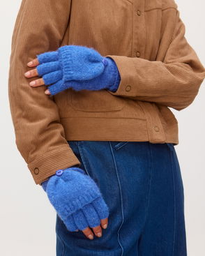 Cornflower Blue Knitted Fingerless Mitten Gloves