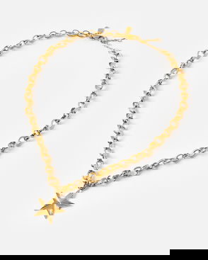 Joni Gold Tone Stainless Steel Waterproof T-Bar Pendant Chain Layered Necklace