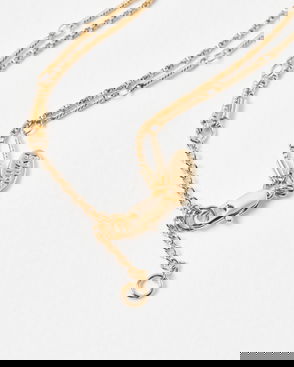 Joni Gold Tone Stainless Steel Waterproof T-Bar Pendant Chain Layered Necklace