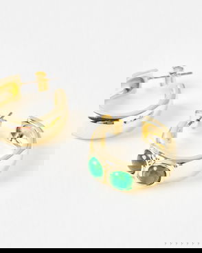Nuala Green Stone Gold Tone Hoop Earrings