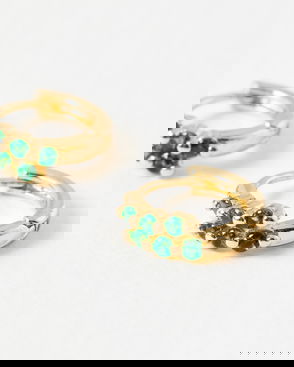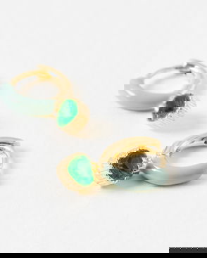 Isola Green Stone Inlay Mini Huggie Earrings