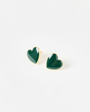 Cove Green Enamel Heart Stud Earrings