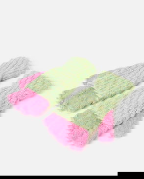 Green Marl & Pink Knitted Fingerless Gloves