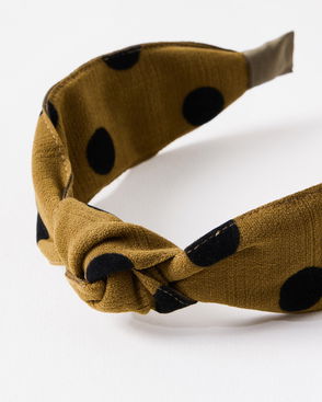 Amaya Polka Dot Khaki Green Knot Headband