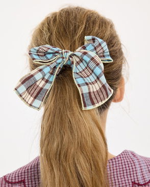 Lillia Blue & Brown Checked Bow Scrunchie