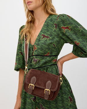 Freya Chocolate Brown Double Buckle Faux Suede Crossbody Bag