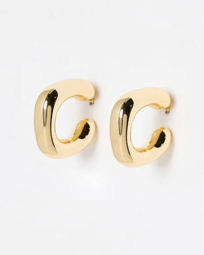 Lottie Curved Abalone Shell Inlay Disc Drop Gold Plated Huggie Earrings