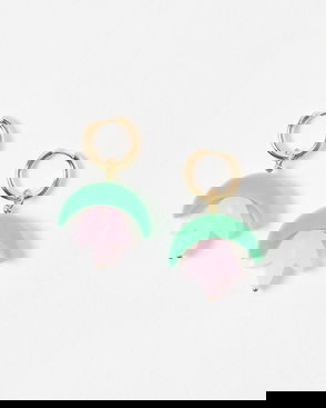 Sloane Green Enamel Heart Charm Hoop Earrings