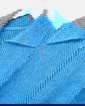 Blue Ribbed Collared Zip Up Knitted Cardigan