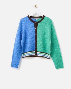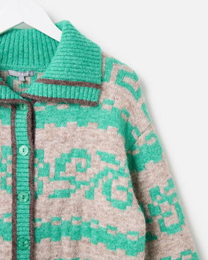 Jade Green & Grey Geometric Collared Button Up Cardigan