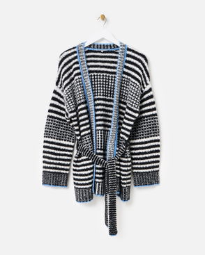 Multicoloured Striped V-Neck Fluffy Knitted Cardigan