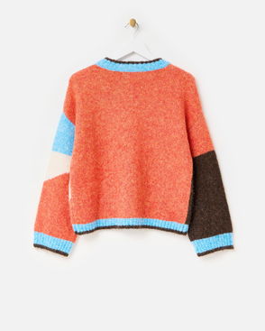 Brown & Orange Geometric Crew Neck Knitted Jumper