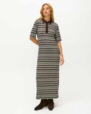Chocolate Brown Checked Jacquard Polo Midi Dress